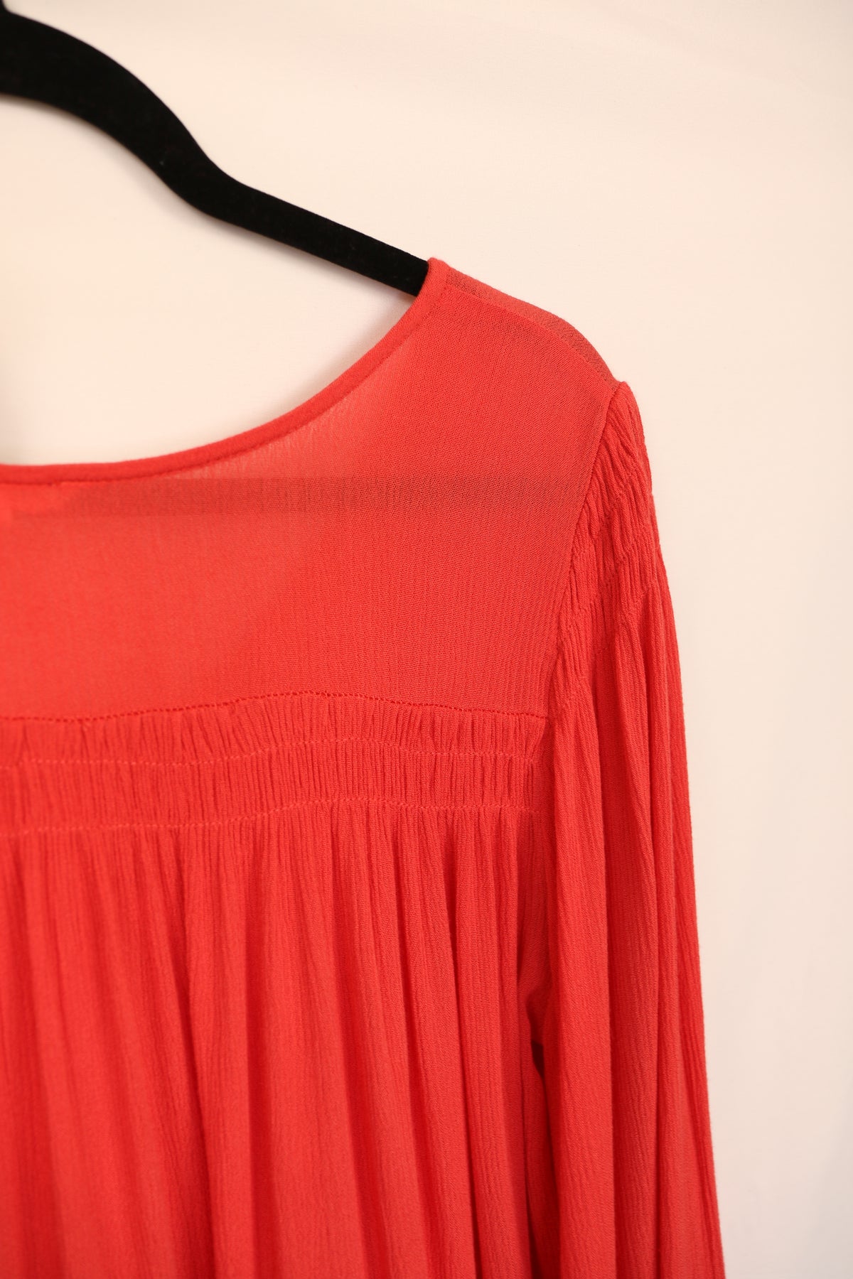 Deep Coral Tiered Ruffle Blouse
